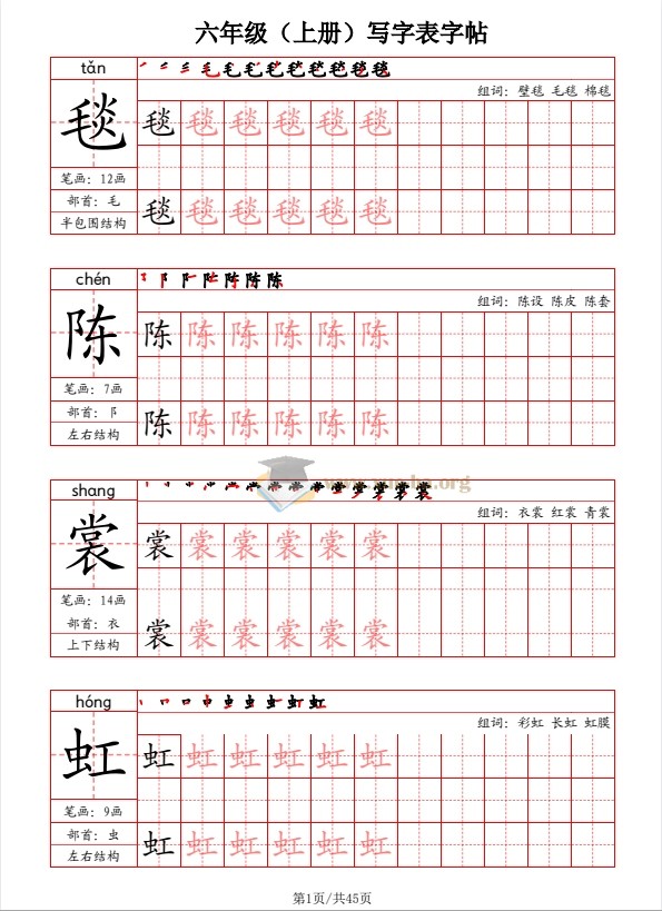 六上-写字表字帖(笔画+部首+笔顺+组词)-(1).pdf