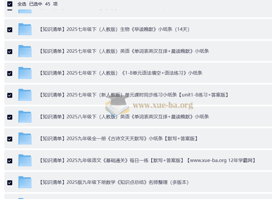 2025 初中知识 清单合集 每日一练查漏补缺专享打印版)