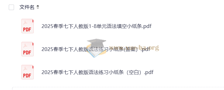【知识清单】2025七年级下(人教版)《1-8单元语法填空+语法练习》小纸条
