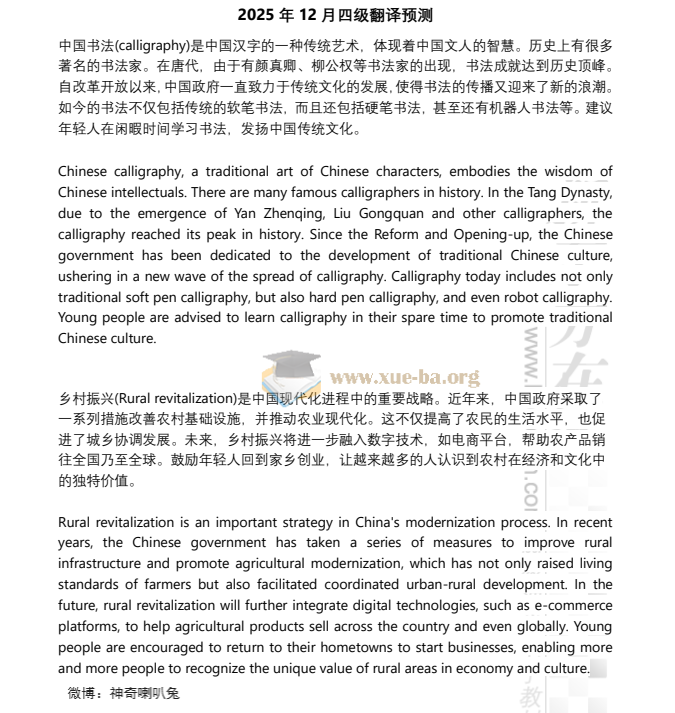 2025年12月 大学英语 四级写译终极预测 夸克网盘