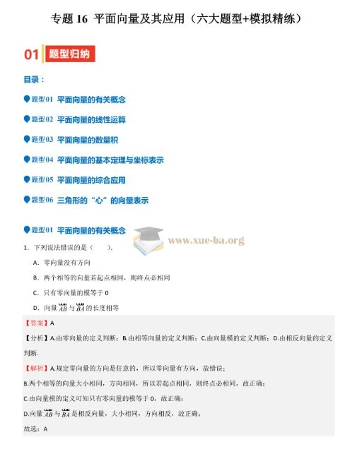 专题16 平面向量及其应用(六大题型+模拟精练+核心素养分析+方法归纳)