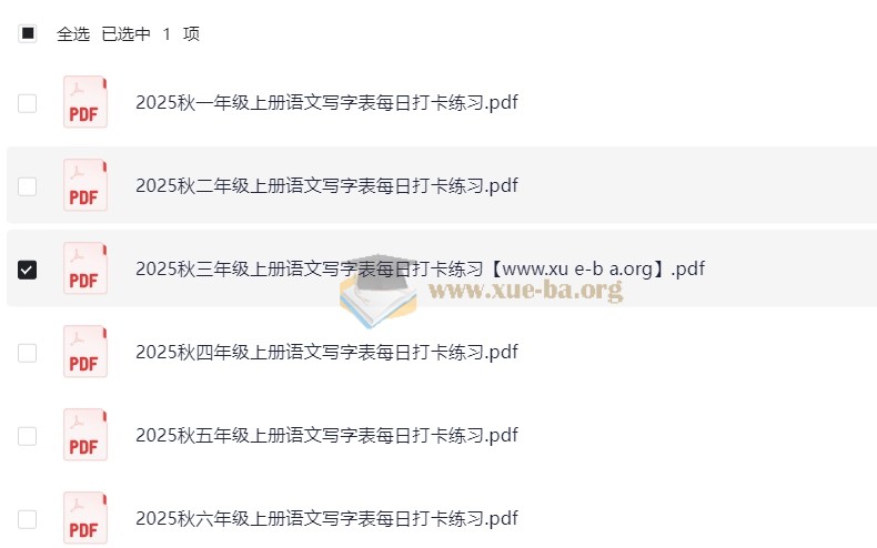 2025秋 小学语文 1-6年级上册写字表每日打卡练习