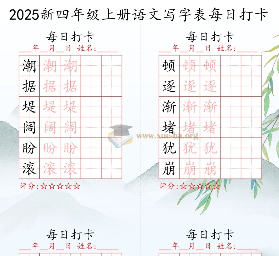 2025秋四年级上册语文写字表每日打卡练习.pdf