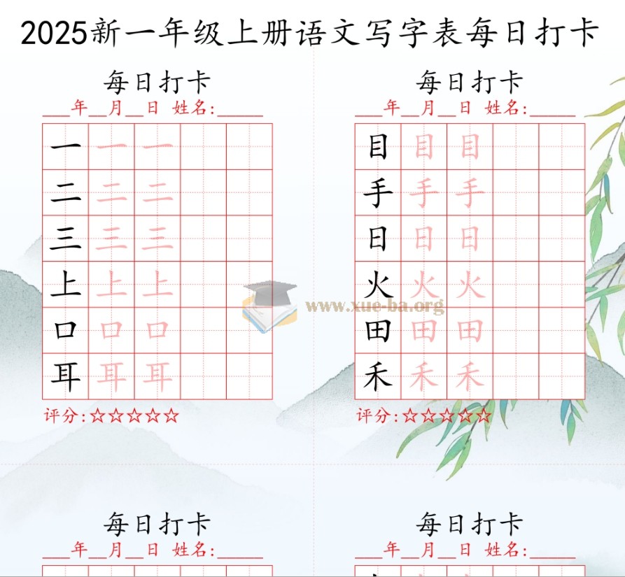 2025秋一年级上册语文写字表每日打卡练习.pdf