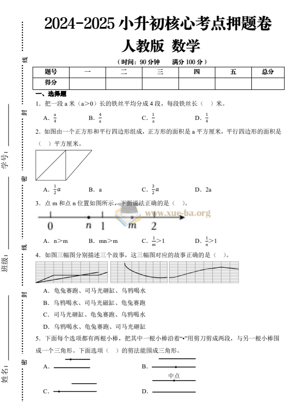 人教版】2024-2025学年小升初考试核心考点押题卷数学.pdf