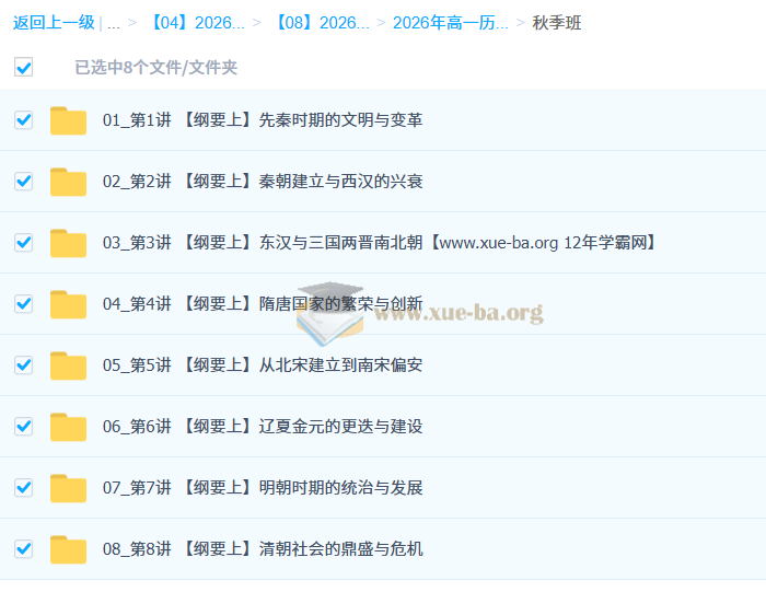2025-2026年高中高一历史 刘莹莹 暑假班 秋季班 百度网盘