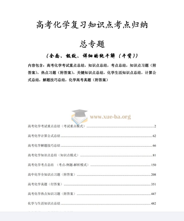 2026版 高考 化学复习 知识点 考点归纳 总专题(500页完整版)
