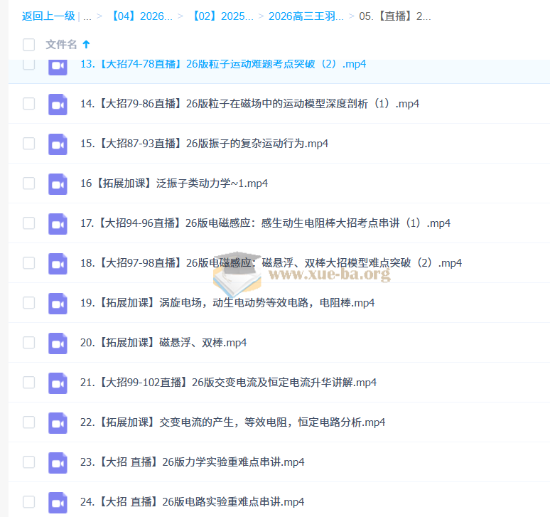 2026高三高考物理 王羽 一轮直播 录播 百度网盘