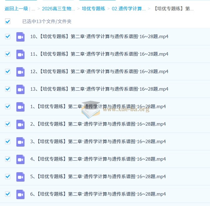 │ 6、【培优专题练】第二章·遗传学计算与遗传系谱图·1~15题.mp4