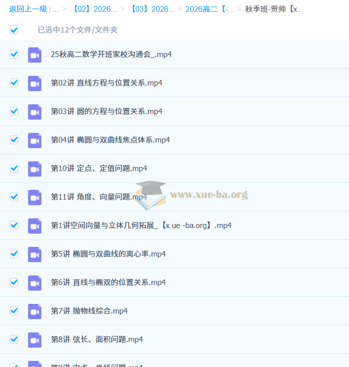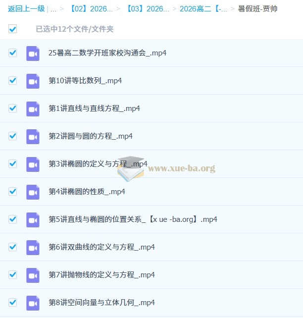 2026高中数学 高二数学 贾帅 暑假班 秋季班 百度网盘