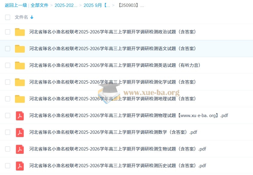 【250910】河北省衡水市高中联考2026届高三上学期质检(一)(全科)【xu e-ba. org】
