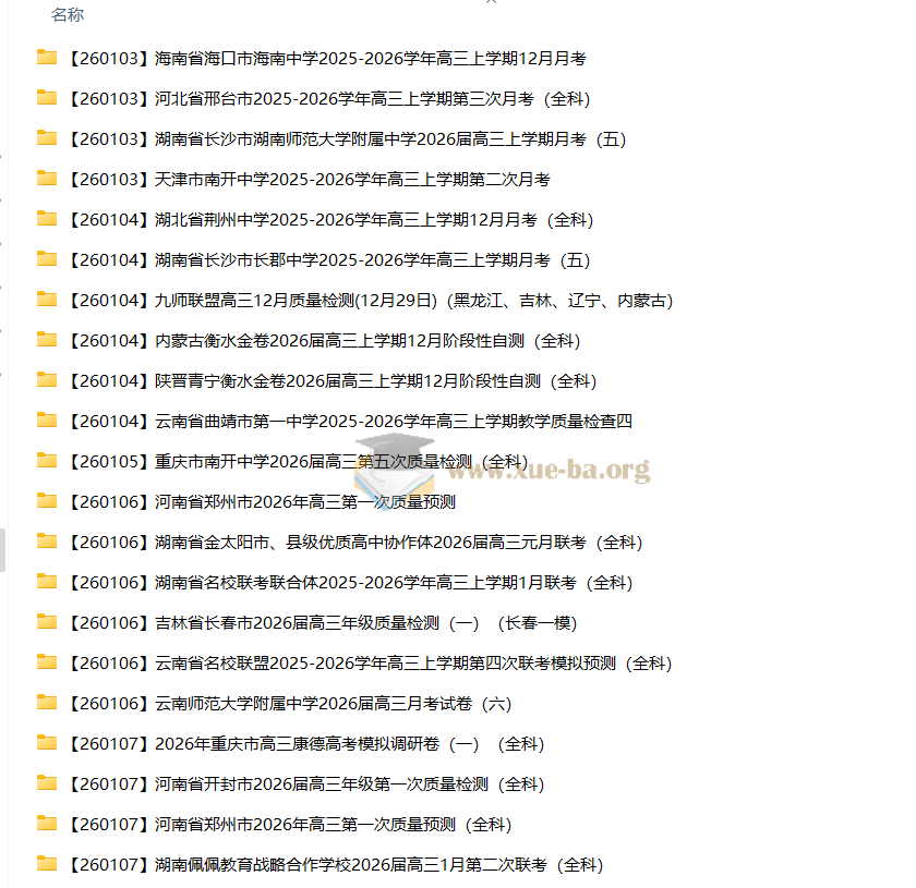 2026届 2025-206高三高考 各地高中名校 2026年1月 试卷合集 更新中