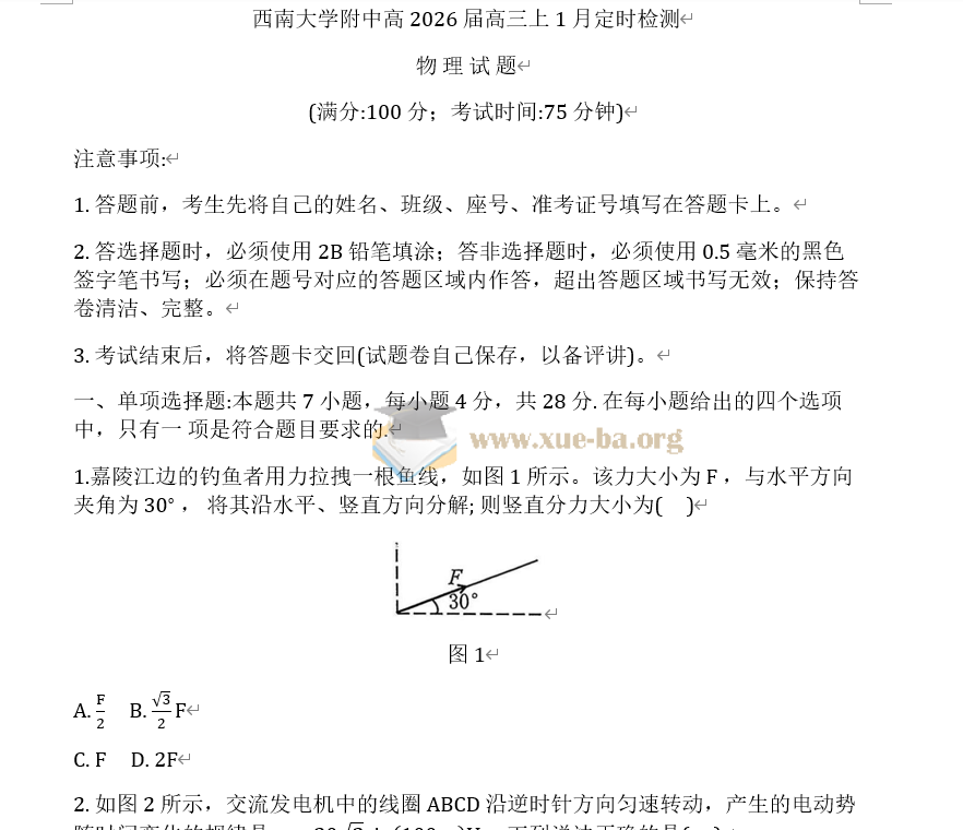 【260112】四川省字节精准教育联盟2026届高三上学期1月第二阶段学情调研测试(全科)【www.xue-ba.org 12年学霸网】.zip