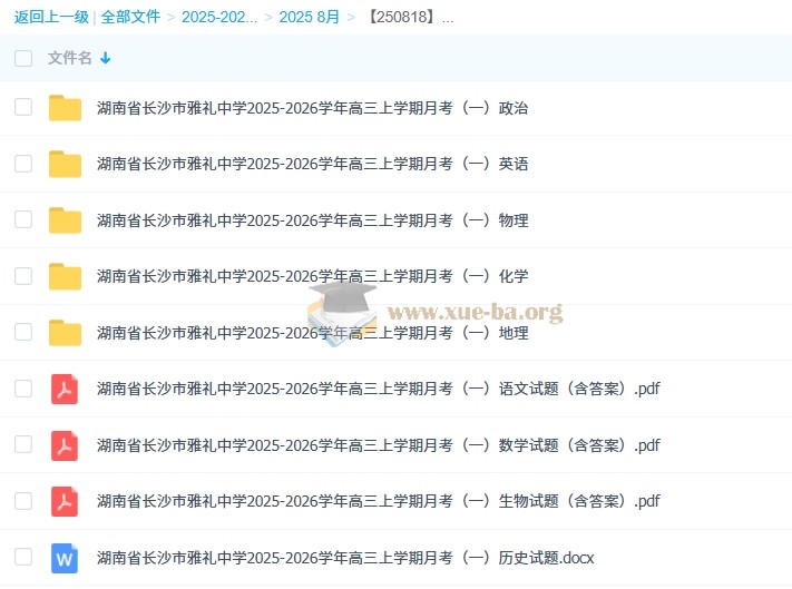 【250818】湖南省长沙市雅礼中学2025-2026学年高三上学期月考(一)(全科)
