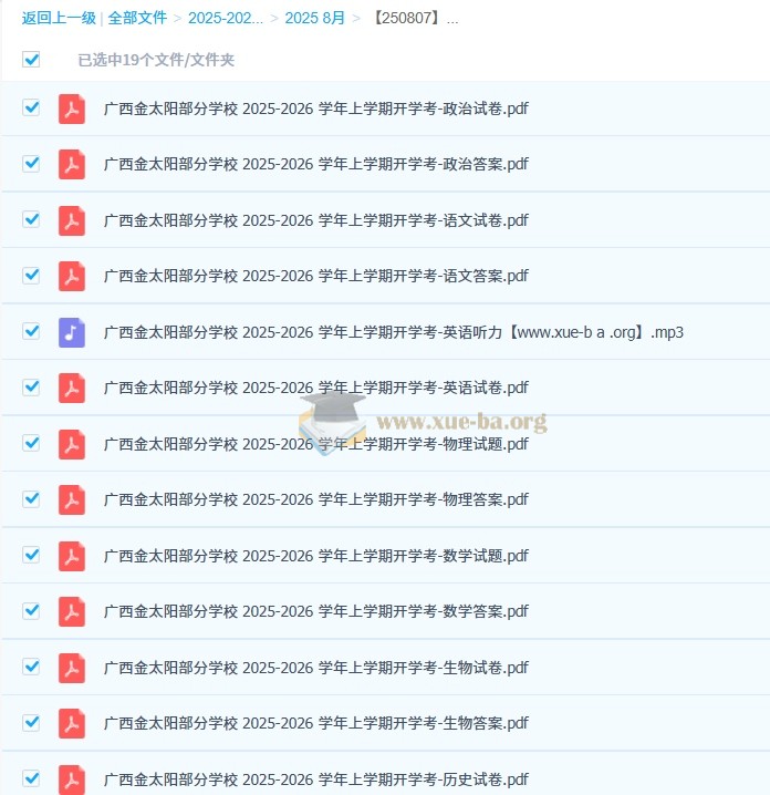 【250807】广西金太阳2025-2026 学年上学期开学考(全科)