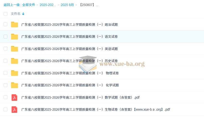 【250807】广东省八校联盟 2025-2026 学年高三质量检测(一)(6003C)(全科)