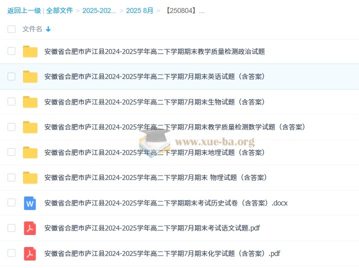 【250804】安徽省合肥市庐江县2024-2025学年高二下学期期末(全科)