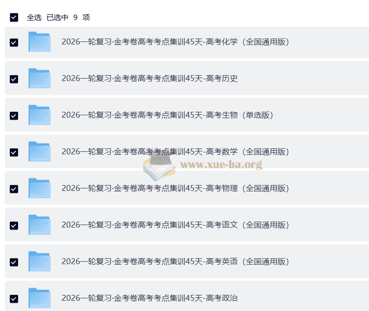 (45天练透考点,每题都是得分点)试题册+答案解析册全套九科(完整版)