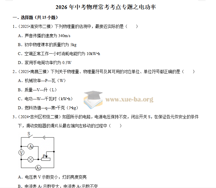│ 2026年中考物理常考考点专题之电压 电阻.docx