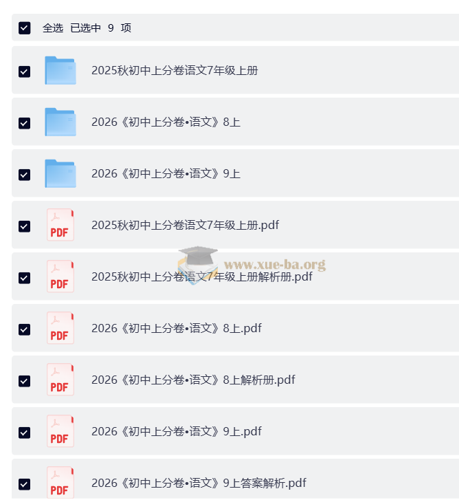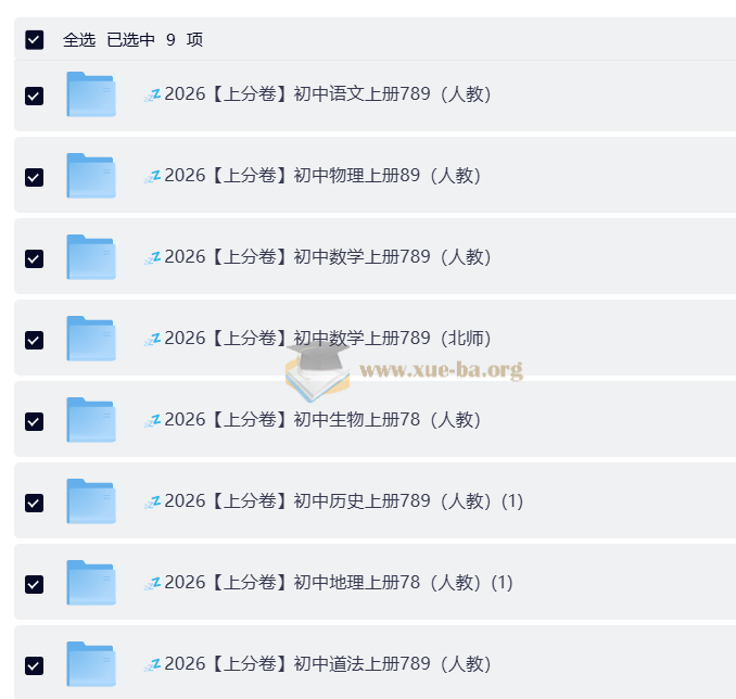 💤2026 上分卷 初中9科 789年级 全套(人教)