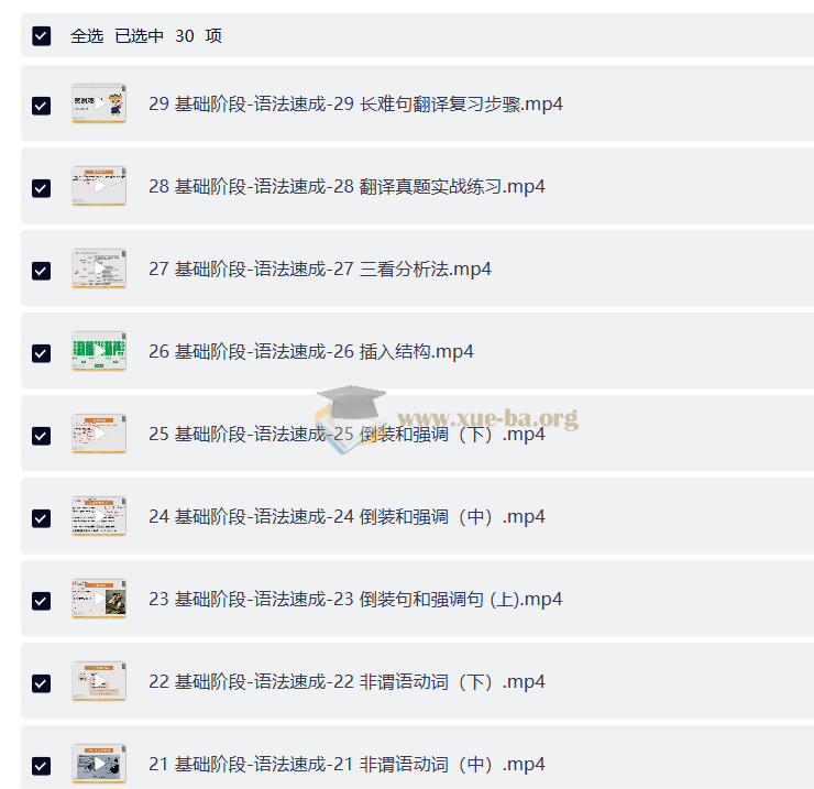 └── 29 基础阶段-语法速成-29 长难句翻译复习步骤.mp4