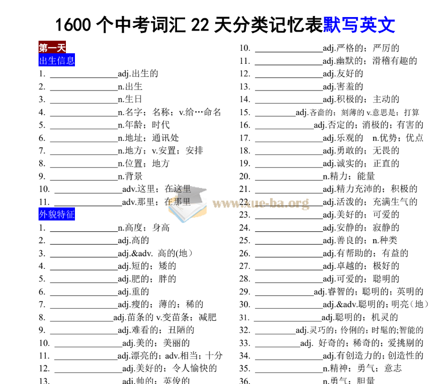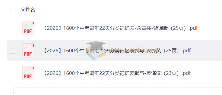 【2026】1600个中考词汇22天分类记忆表默写-汉译英(25页)pdf