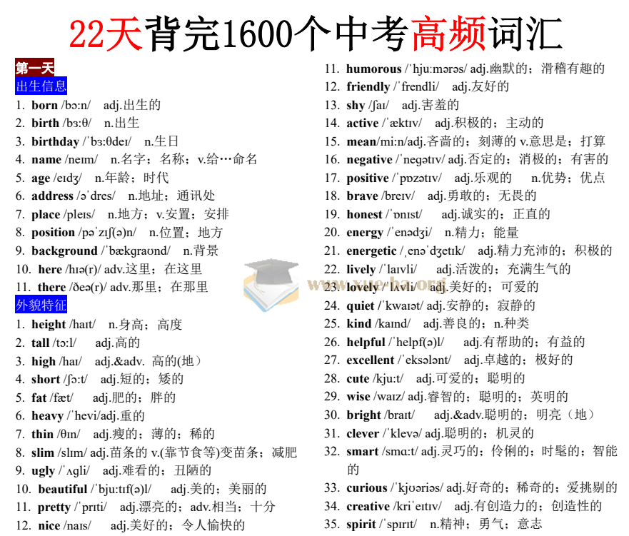 【2026】1600个中考词汇22天分类记忆表-含音标-背诵版(25页).pdf