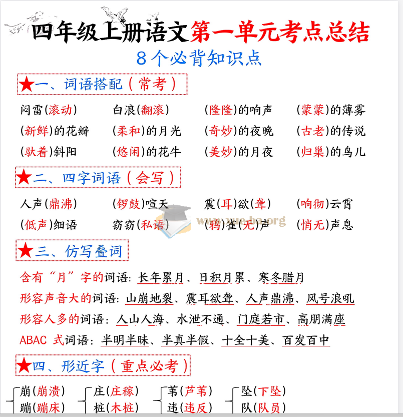 四年级 语文上册1-8单元考点总结(8个必背知识点).pdf