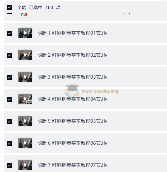 ├── 课时1 拜厄钢琴基本教程01节.flv