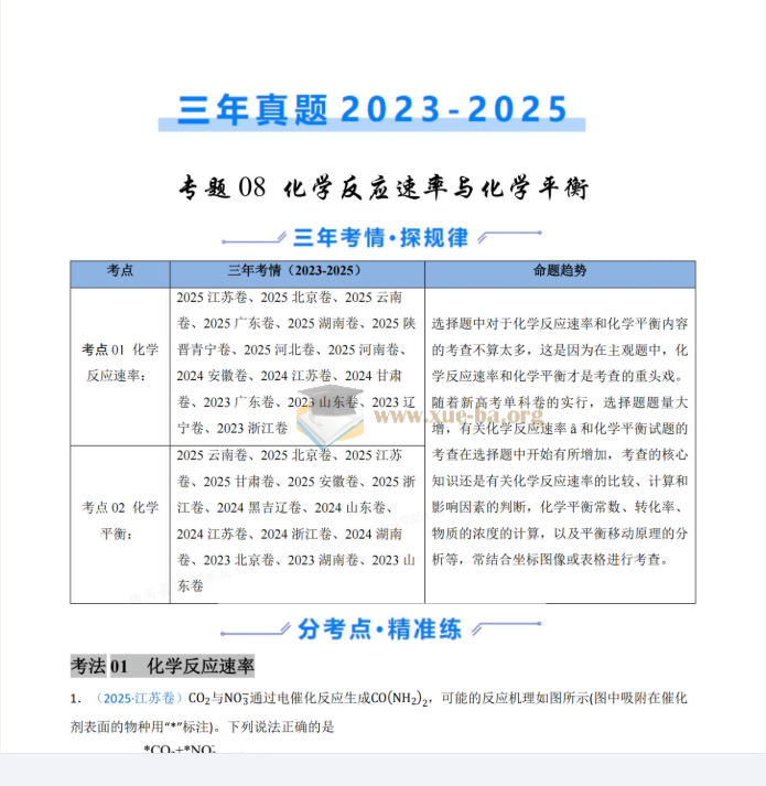 备战2026年高考化学三年(2023-2025)真题汇编(通用版)专题08化学反应速率与化学平衡(原卷版+解析)