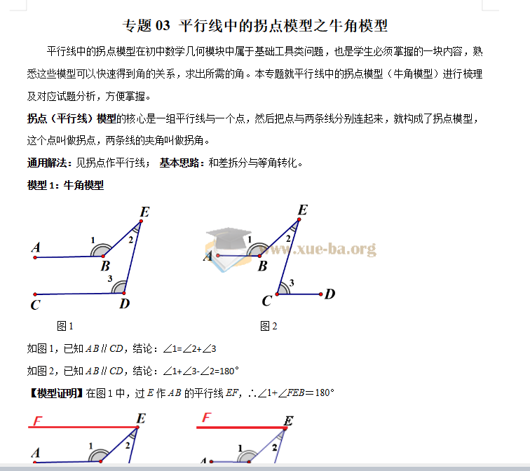 2023-2024学年七年级数学下册常见几何模型全归纳之模型解读与提分精练(北师大版)