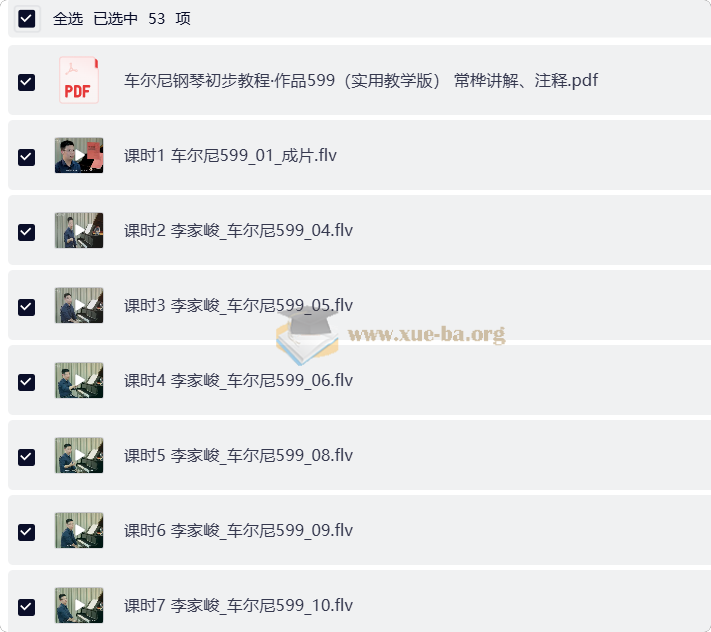 车尔尼599钢琴教程,包含常桦老师讲解的详细PDF教程和49节高清视频课(李家峻老师示范),从第1条到第56条重点曲目都有逐条精讲。🎹