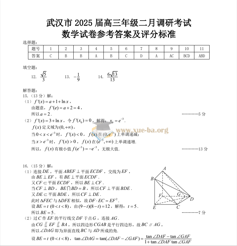 【独家】【湖北卷】【调考合辑汇编】【2026届高三必刷】2020~2025武汉调考试卷调考合辑答案册(72页).pdf