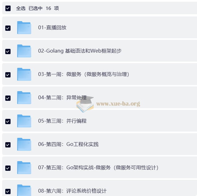 分享一套超实用的「Go进阶训练营」第四期全套资源,包含直播回放+源码课件,共16个模块。从基础语法、微服务、并发编程到工程化、架构实战(如缓存、事务、消息队列等)全部覆盖,内容非常扎实。💡