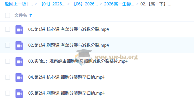 │ ├── 01.第1讲 核心课 有丝分裂与减数分裂.mp4
