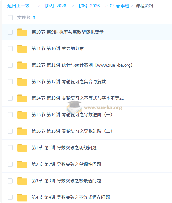 春季班目录: