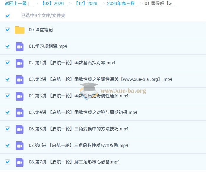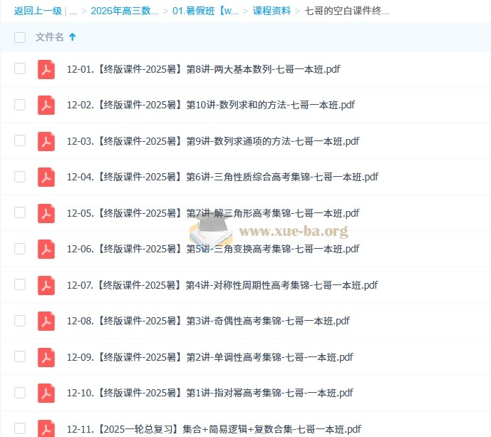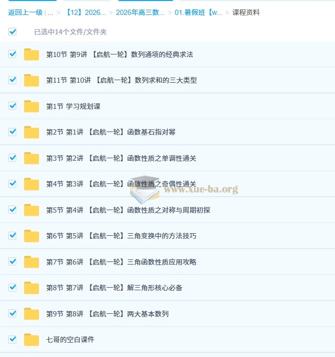 刘天麒 2026高三高考数学 一轮尖端 一轮提升 暑假班 百度网盘