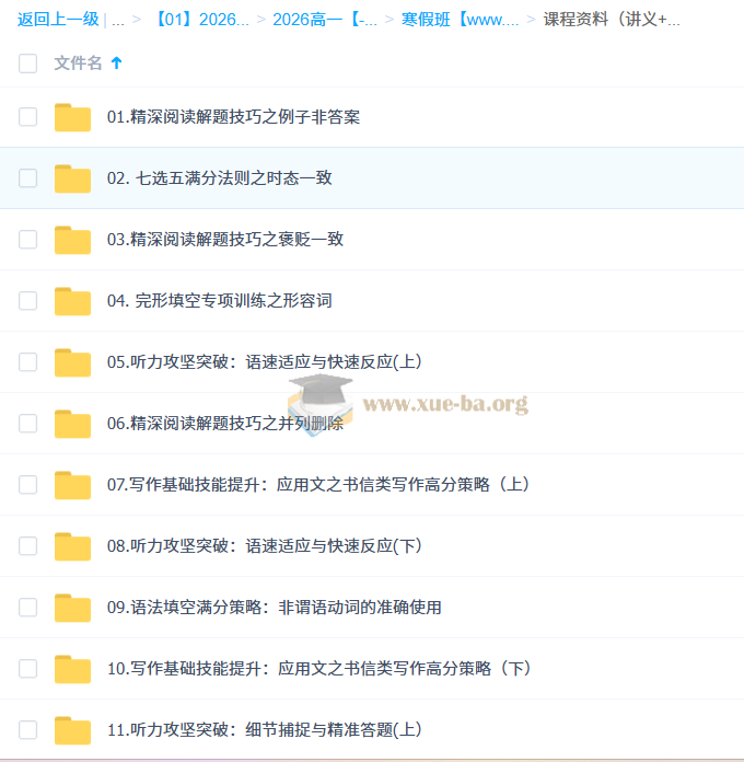 龙坚 2026高一高中英语 二轮寒假班 百度网盘
