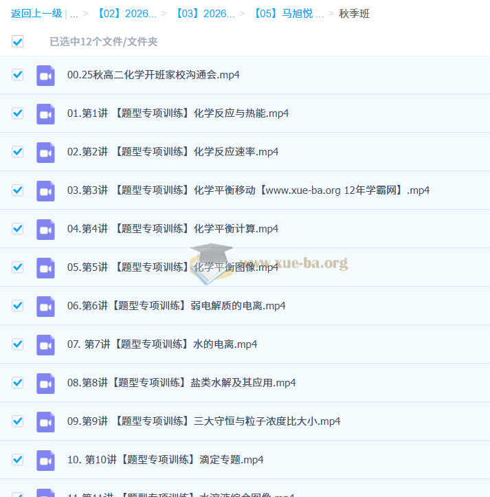 马旭悦 2026高中 高二化学 一轮秋季班 百度网盘