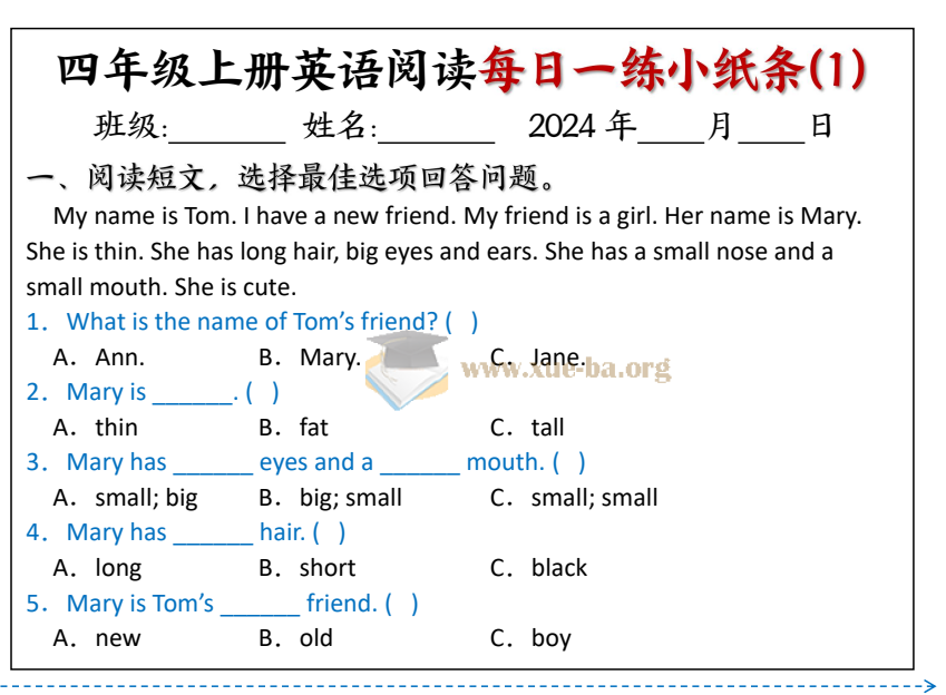 四上英语阅读每日—练小纸条(含答案16页) .pdf