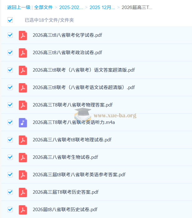 ![[免费下载]2026届高三T8联考(12月 八省联考)试卷及答案第1张 - 学霸网](https://www.xue-ba.org/wp-content/uploads/2026/01/1768700881-image.png)