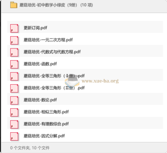 蘑菇培优这套初中数学小绿皮(9册)真挺实用,不是那种泛泛刷题本。从一元二次方程、因式分解到全等、相似三角形全齐,数论和有理数综合也安排上了,知识点拆得很细,拿来补弱项或者系统复习都合适。每个专题都有难度梯度,不是一味堆题。刚整理的,链接直接存就行👇
