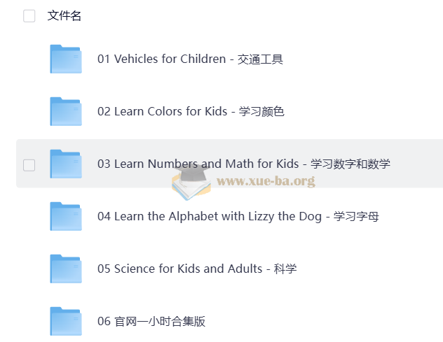 │ ├── 07. Learning with Vehicles Vol 2 _ ABCs, Numbers, Colors and More with Trucks for Kids.mp4