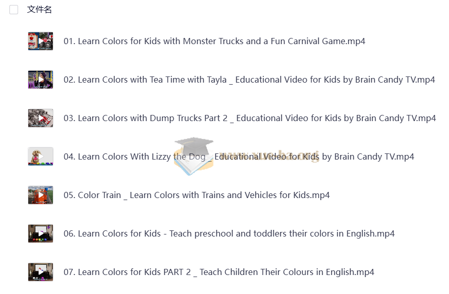 │ ├── 06. Learn Colors for Kids - Teach preschool and toddlers their colors in English.mp4