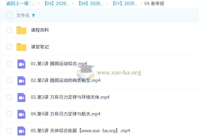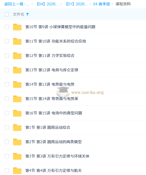 春季班目录:
