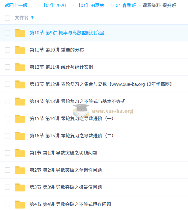 田夏林 高中数学 2026高二数学提升班一轮二轮 暑假秋季寒假春季全年