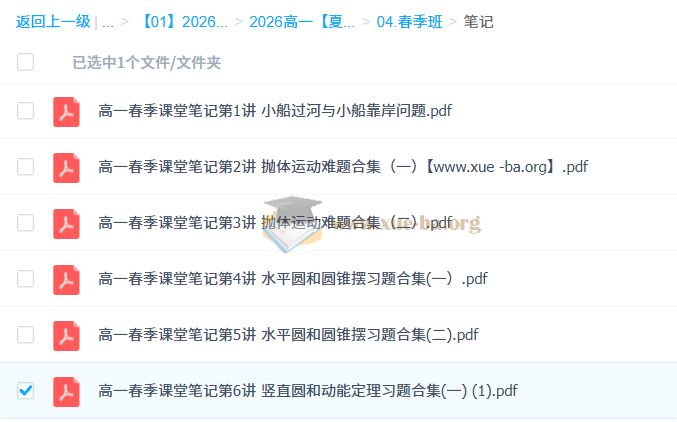 高一春季课堂笔记第6讲 竖直圆和动能定理习题合集(一) (1).pdf