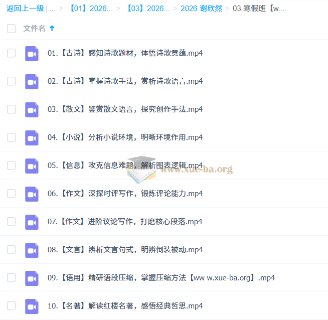 谢欣然 2026高一 高中语文 寒假班 百度网盘