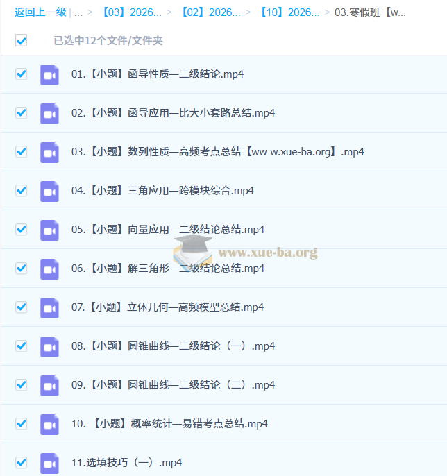 张磊 2026高三 高考数学 二轮寒假班 百度网盘