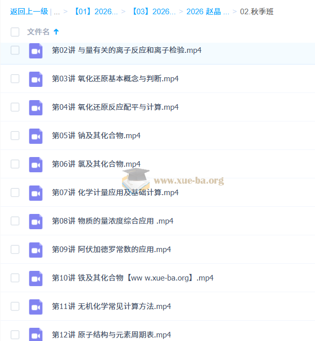 赵晶 2026高中高一化学 一轮暑假班秋季班 百度网盘